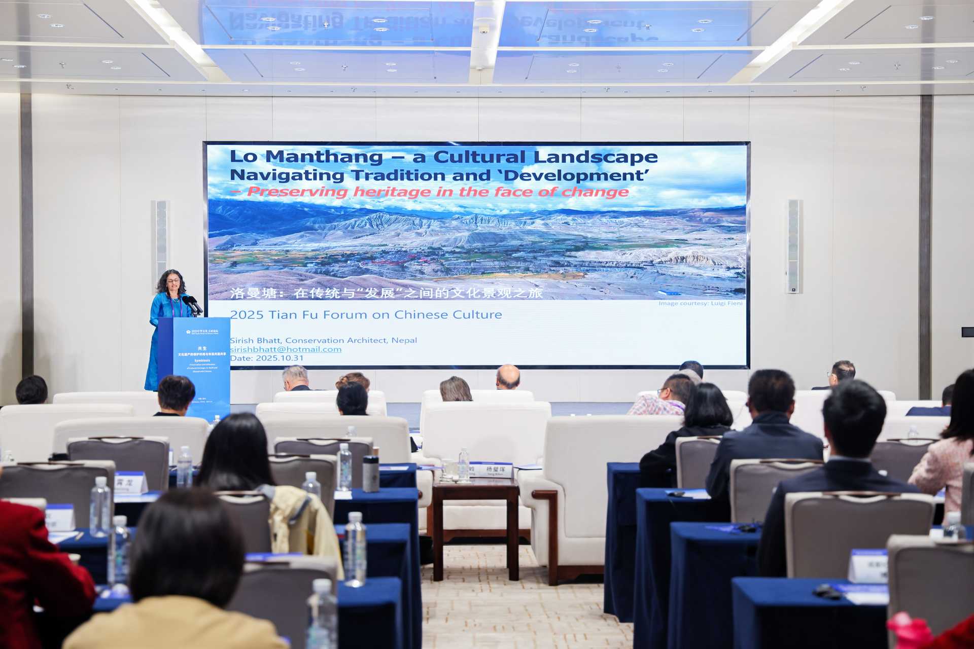 10月31日,在2025中华文化天府论坛——“共生:文化遗产的保护利用与市民共建共享”分论坛上,尼泊尔古迹遗址理事会专家希丽思·帕塔作了题为“洛曼塘:在传统与‘发展’间探寻前行的文化景观”的演讲,为大家介绍了一座古老的王城:洛曼塘(Lo Manthang)古城和它的发展故事。
